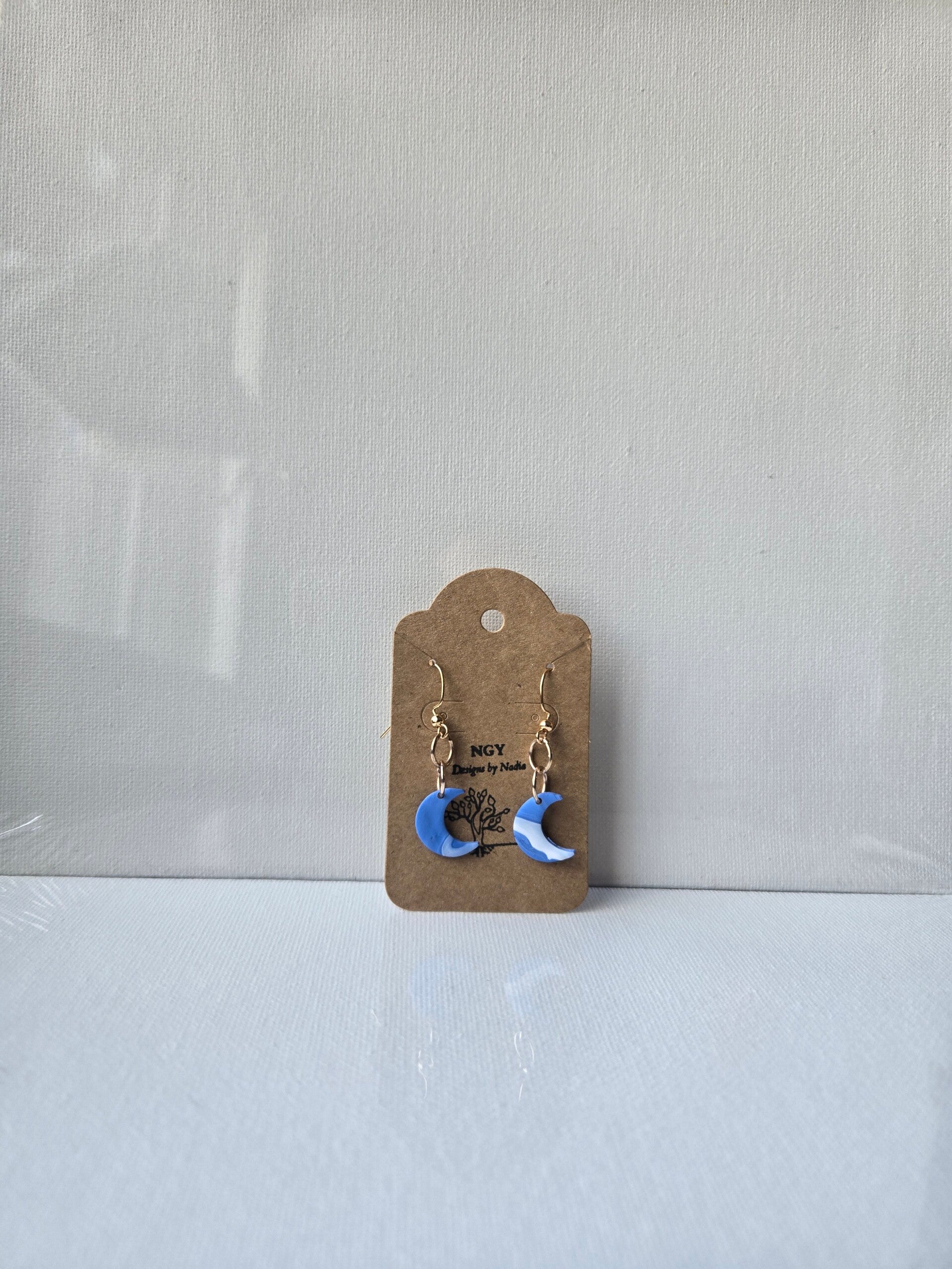 Reminiscent of the crescent moon in Islam, these handmade polymer clay earrings can be made as a singular color or custom created with multiple colors mixed upon request.